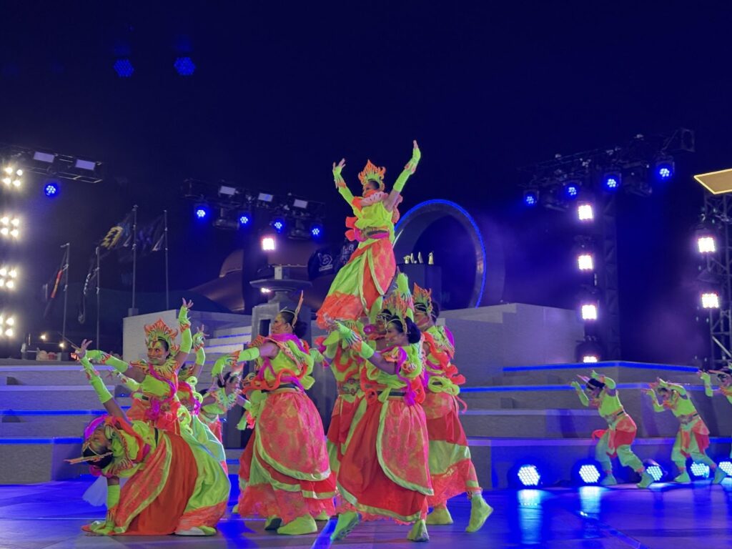 Sebanyak 60 penari mengenakan busana tradisional dari berbagai daerah seperti Gandrung (Jawa Timur), Legong (Bali), Dayak (Kalimantan), Papua, dan Betawi (Jakarta), menyatu dalam ekspresi keberagaman Indonesia.