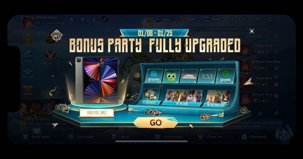 Selain giveaway iPad Pro M5 harian, kampanye ini menghadirkan kembalinya skin M Series populer serta M7 Gatotkaca Battle Emote eksklusif untuk pemain Indonesia.