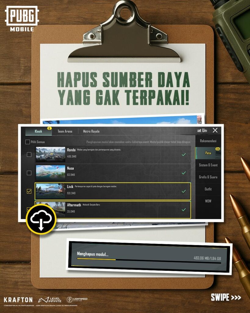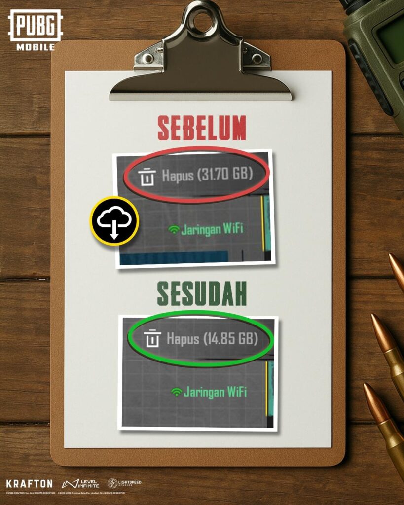 Seiring bertambahnya konten di dalam game, PUBG MOBILE juga menyimpan berbagai sumber daya tambahan yang tidak selalu digunakan oleh pemain. File seperti resource map tertentu, kosmetik, hingga data event lama dapat menumpuk dan memakan ruang penyimpanan tanpa disadari.